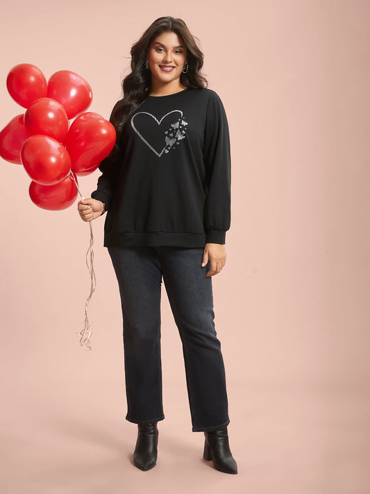 Love Rhinestone Shiny Stretchy Fitted Sweatshirt