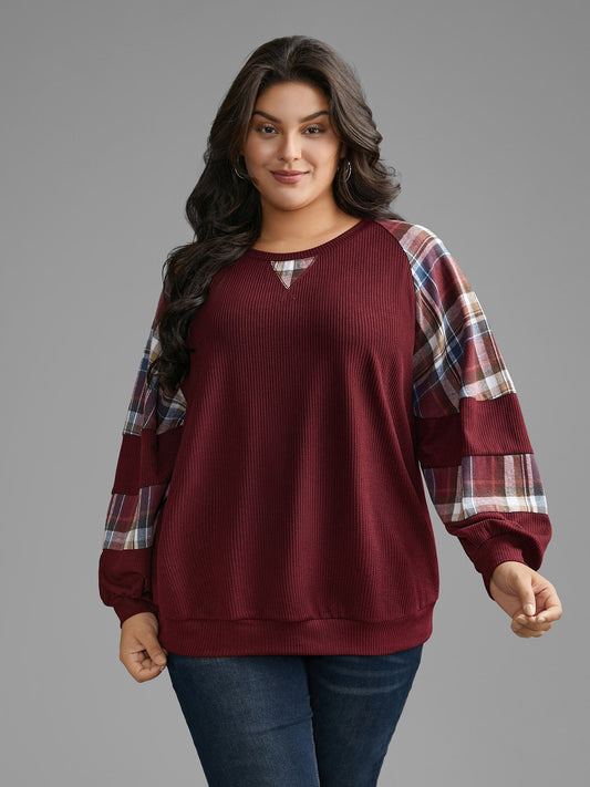 Plaid Patchwork Raglan Sleeve Sweatshirt
