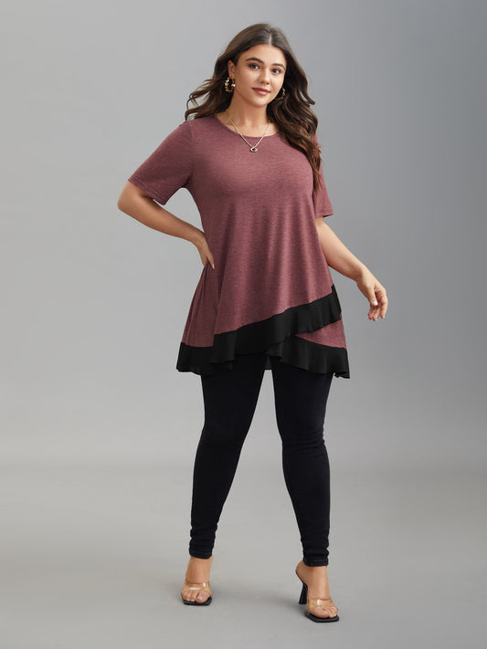 Colorblock Contrast Crew Neck Raglan Sleeve T-shirt