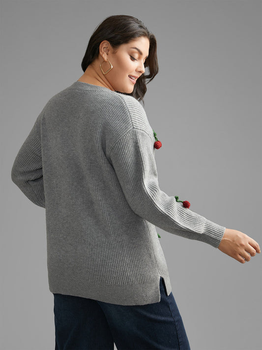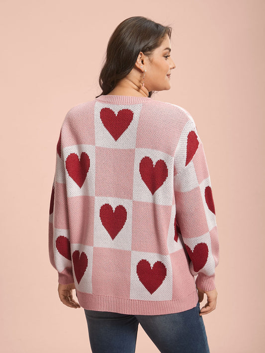 Checkered Hearts Jacquard Color-Contrast Pullover