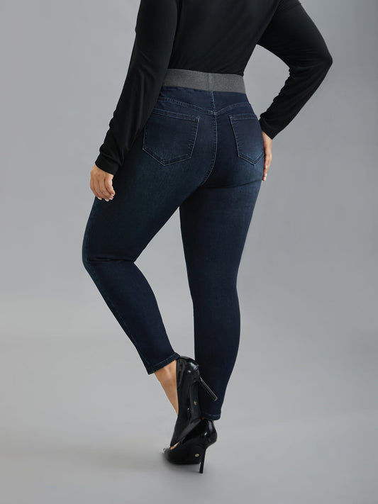 Stretchy Whiskered Waist Skinny Knit Jeans