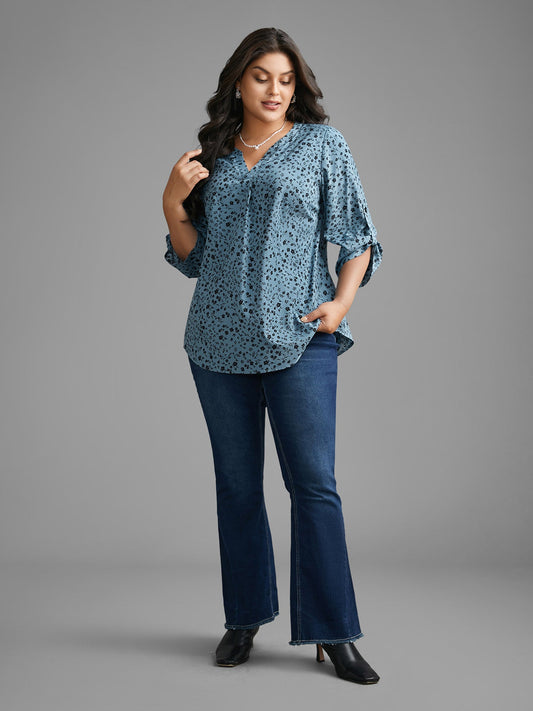 Ditsy Floral Button Cuff Sleeve Pleated Blouse