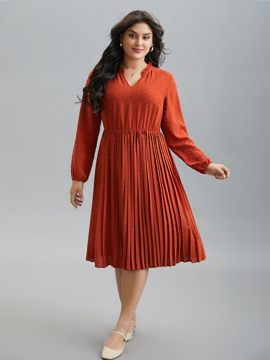 Plain Ruffle Tiered Sleeve V Neck Polka Dot Blouse