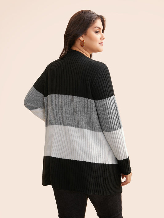 Contrast Kimono Collar Asymmetrical Hem Cardigan