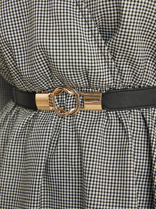 Solid Pocket Laser Cut Surplice Neck Knee Dress