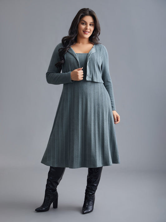 Ruffled Stretchy Waist Puff Sleeve Dress