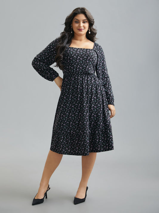 Ditsy Floral Adjustable Straps Drawstring Dress