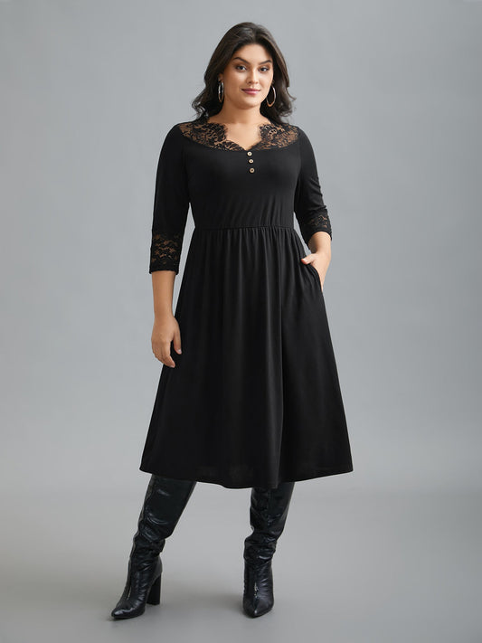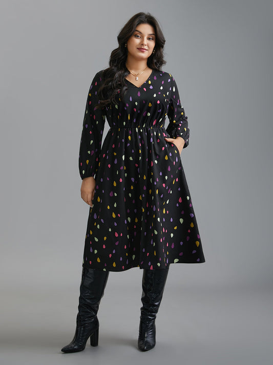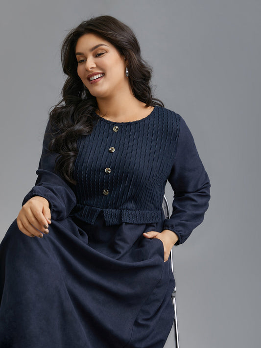 Crew Neck Colorblock Contrast Striped Pocket Dress