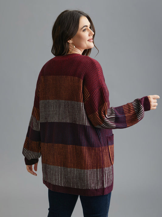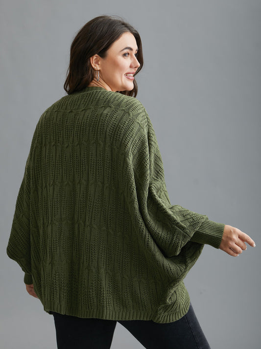 Curved Open-Front Dolman Sleeve Knit Cardigan