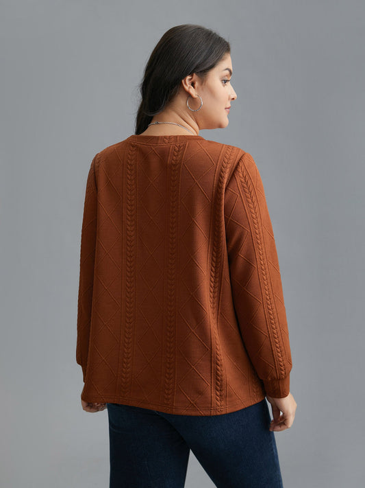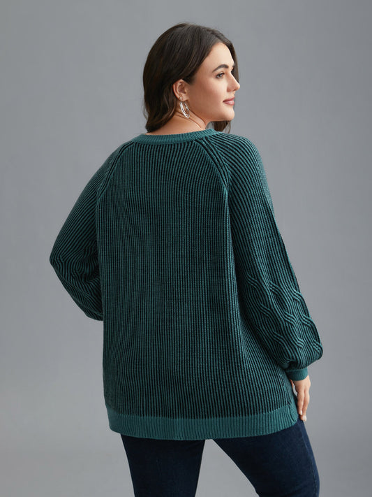 Cable Knit V-Neck Raglan Sleeve Pullover
