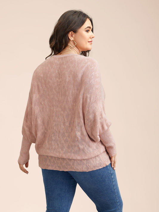 Heather Textured Dolman Sleeve Ribbed Pullover