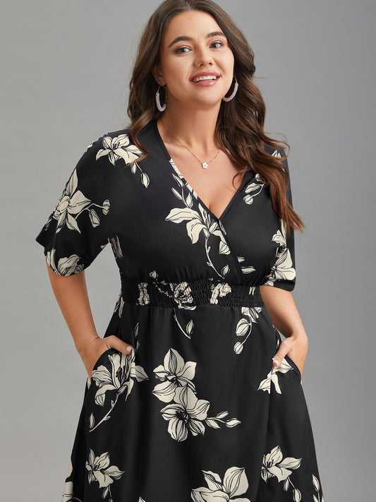 Polka Dots Print Cut-Out Flutter Sleeve Midi Dress