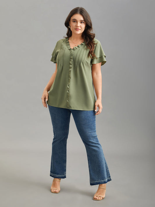 Ruffled Neck Toothpick Pleats Lotus Leaf Sleeve Shirt