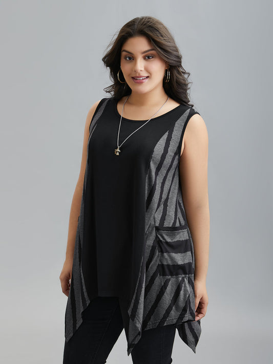 Striped Spliced Pockets Hi-Low Hem Vest