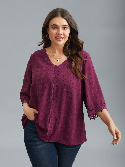 Textured Color-Block Lace Detail Shirt