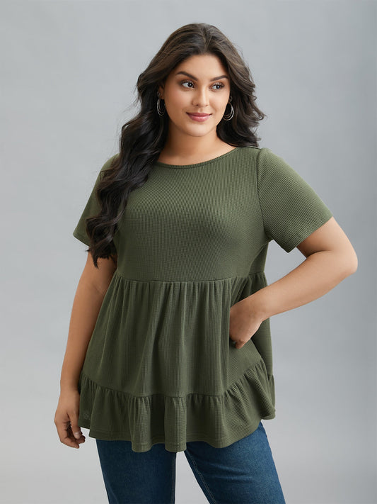Textured Tiered Stretchy Round Neck Top
