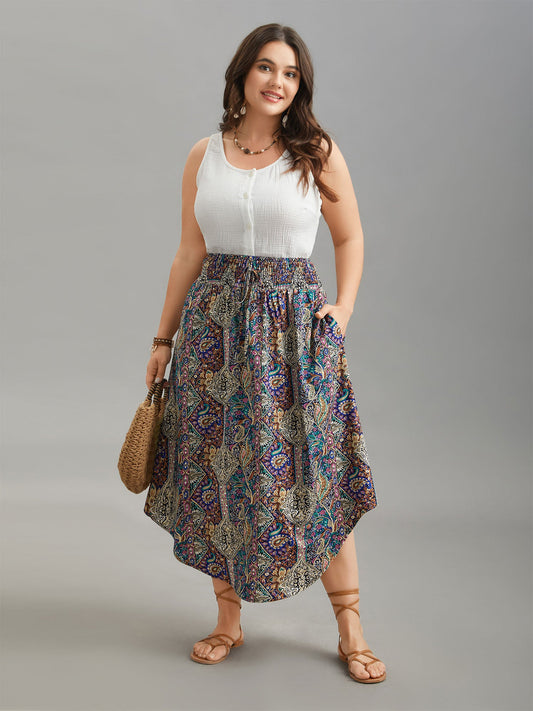 Stretchy-Waist Pockets Plain Textured Midi Dress