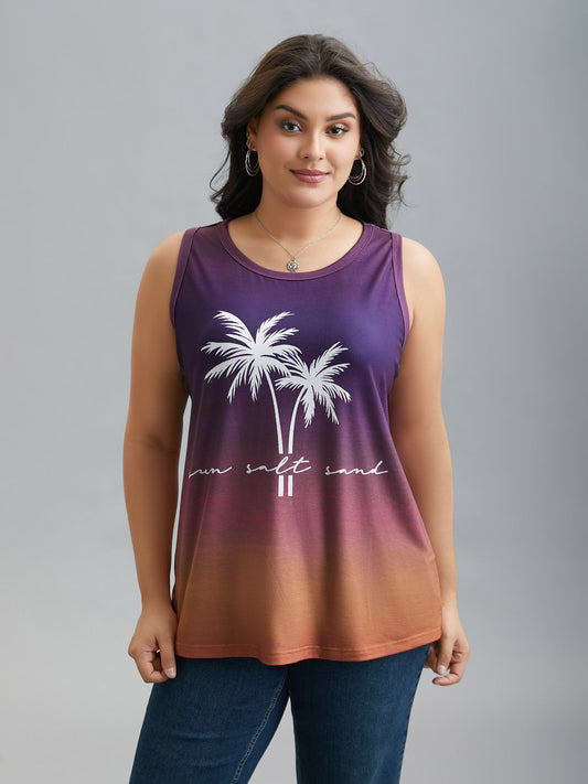 Tropical Print Round Neck Gradient Vest