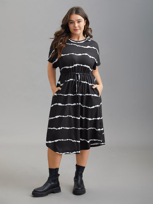 Striped Waist-Tie Dolman Sleeve Midi Dress