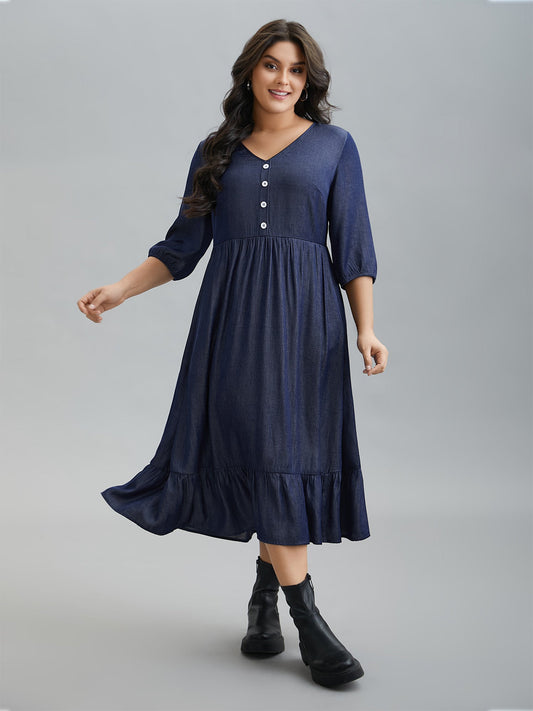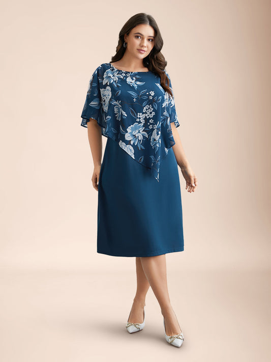 Floral Print Lantern Sleeve Tiered Midi Dress