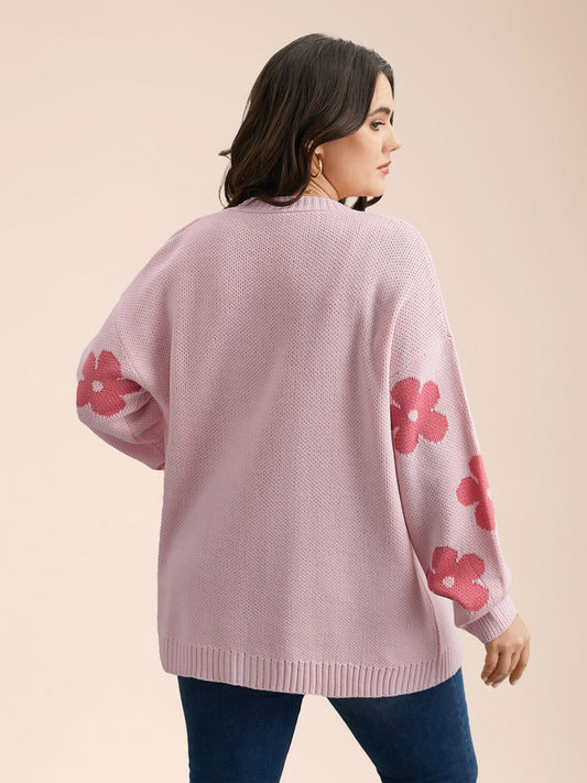 Floral Jacquard Ribbed Hem Knit Cardigan