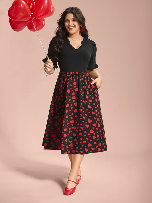 Multi-Color Hearts Spliced Slim-Fit T-Shirt