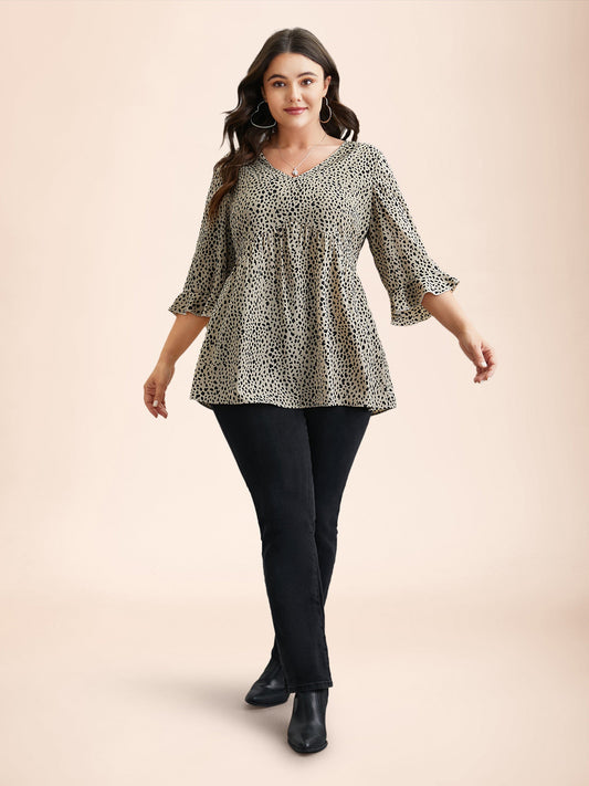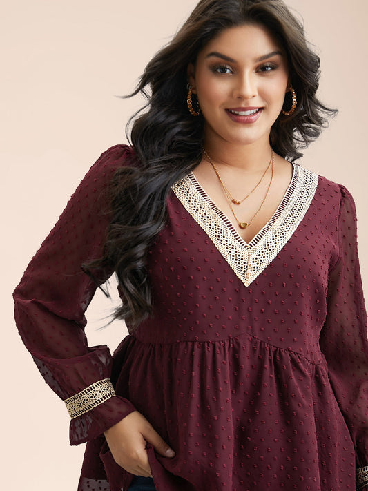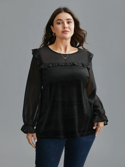 Ruffle Detailing Sheer Elastic Cuffs Blouse
