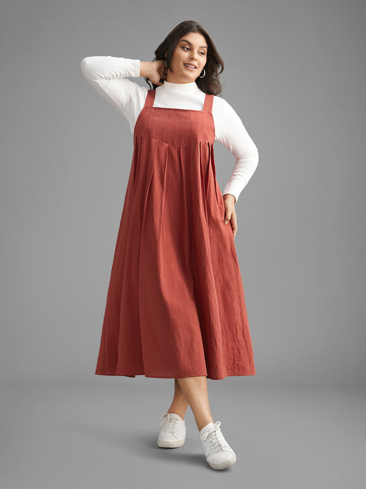 Solid Pleated Adjustable Straps Dress