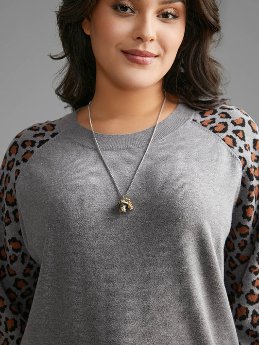 Crew Neck Plain Textured Lantern Sleeve Pullover