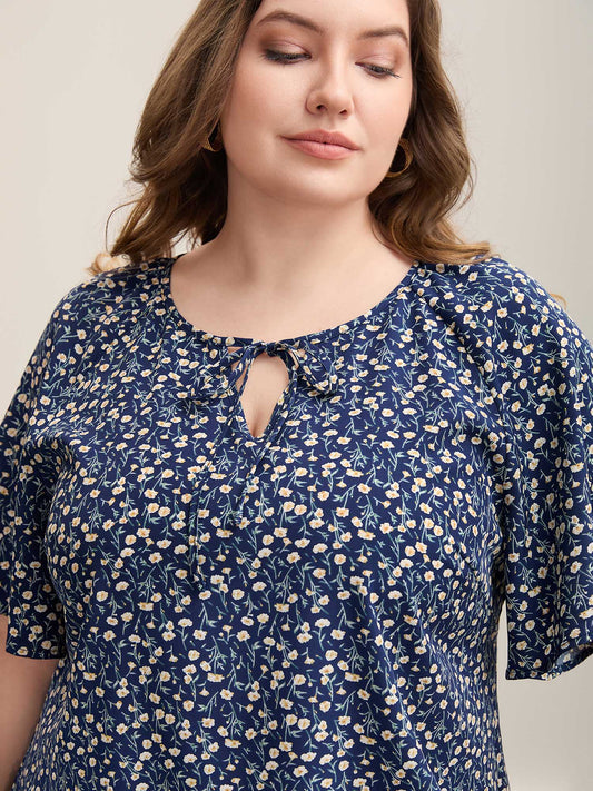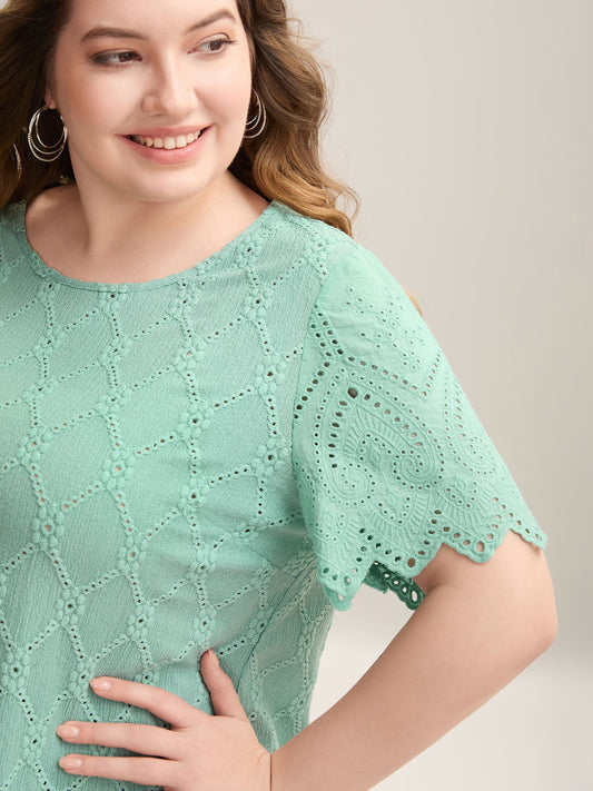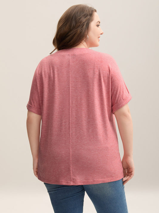 Cut-Out Textured Spliced Sleeve T-Shirt