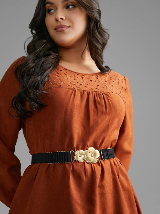 Mock Neck Sheer Sleeves Chiffon Midi Dress