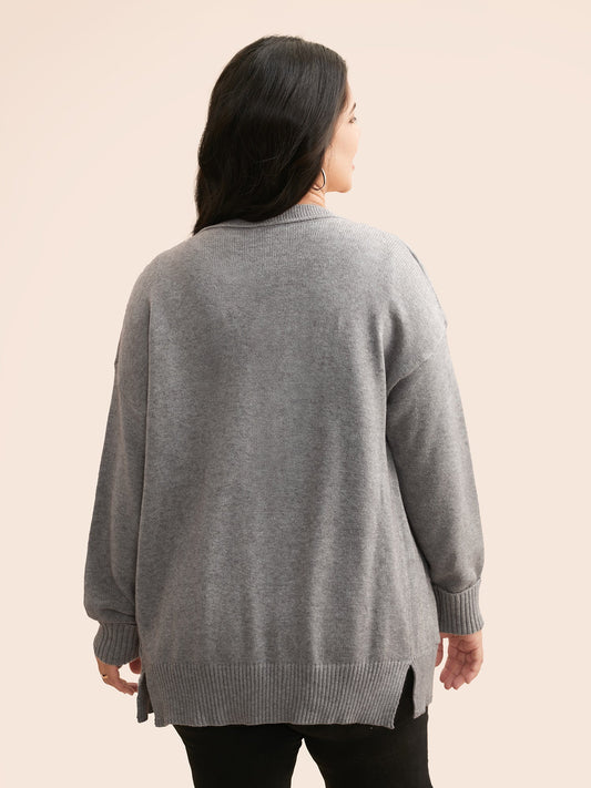 Polka Dot Texture Split Hem Pullover