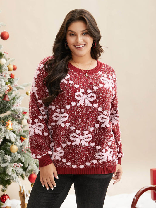 Bow Pattern Crew-Neck Pullover