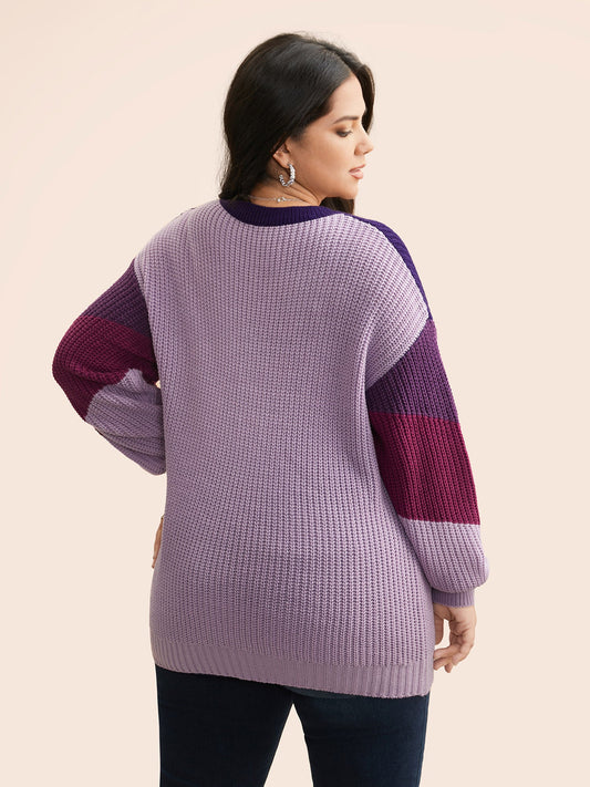Colorblock Contrast Drop Shoulder Sleeve Pullover