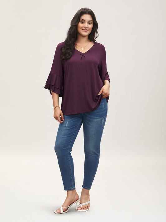 Supersoft Essentials Ruffle Layered Sleeve Pleated T-shirt