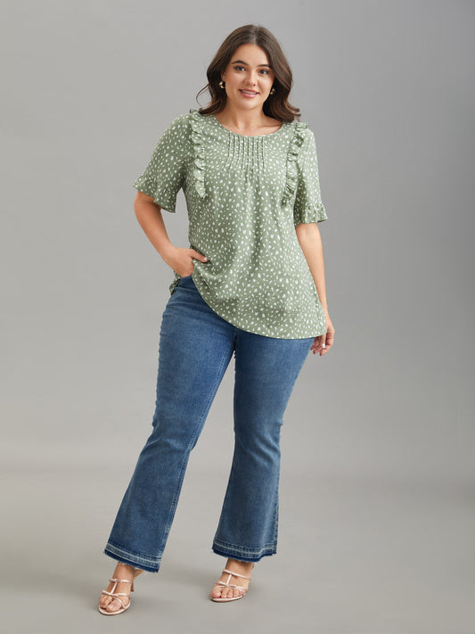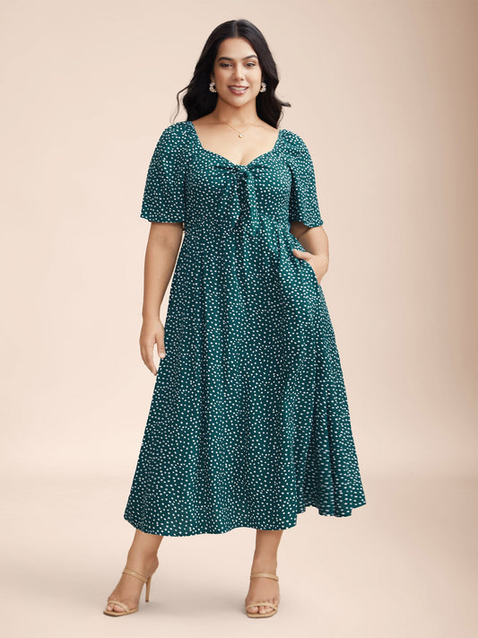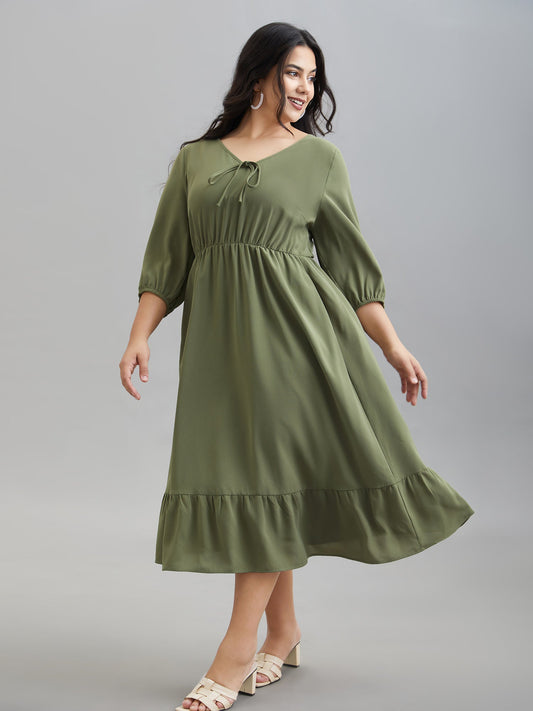 Lantern Sleeve V-Neck Tiered Midi Dress