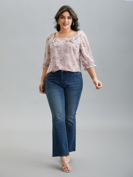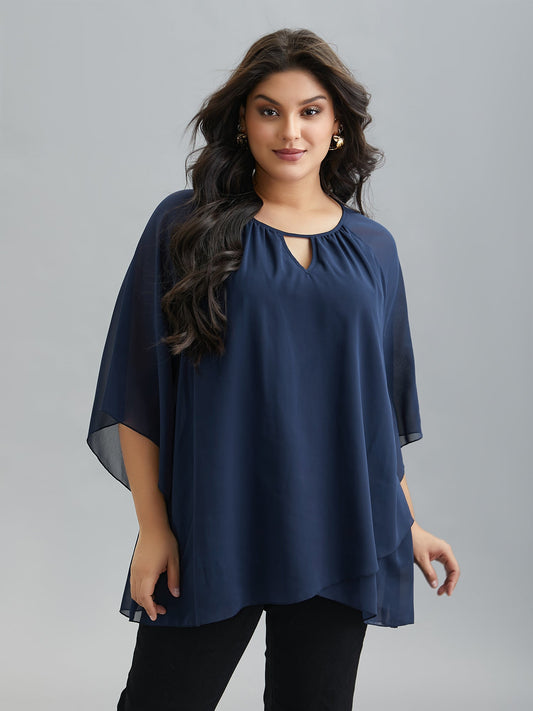 Ruched Neckline Lotus Leaf Sleeve Blouse