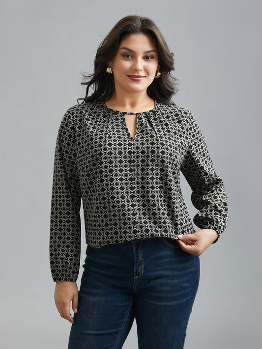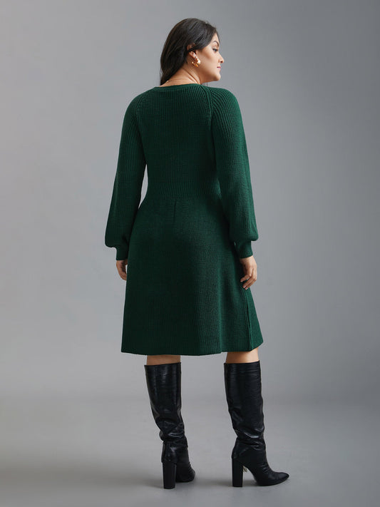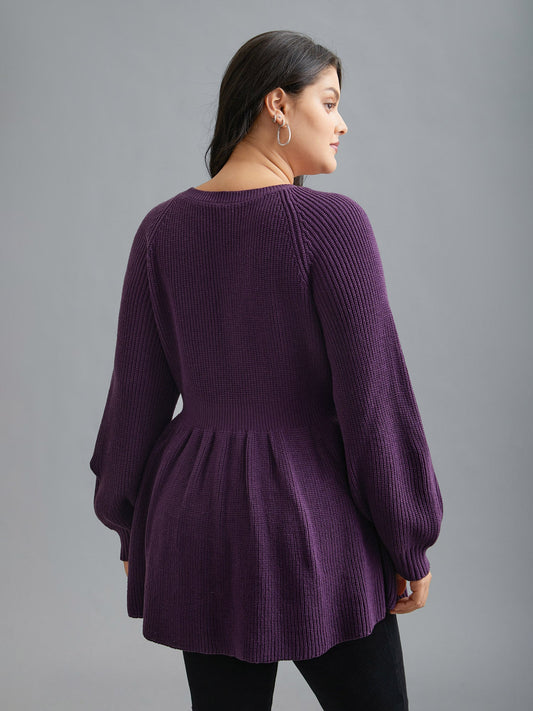 Plain Textured Keyhole Raglan Sleeve Pullover