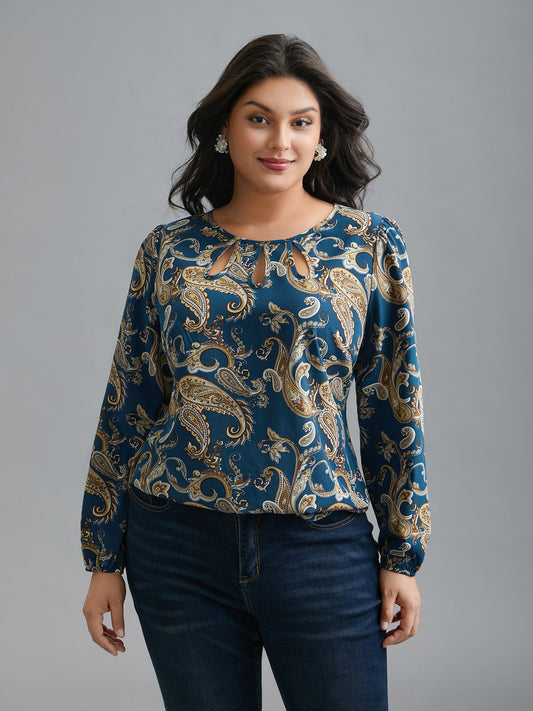 Ruffled Pleated Stretchy Waist Flowy Blouse