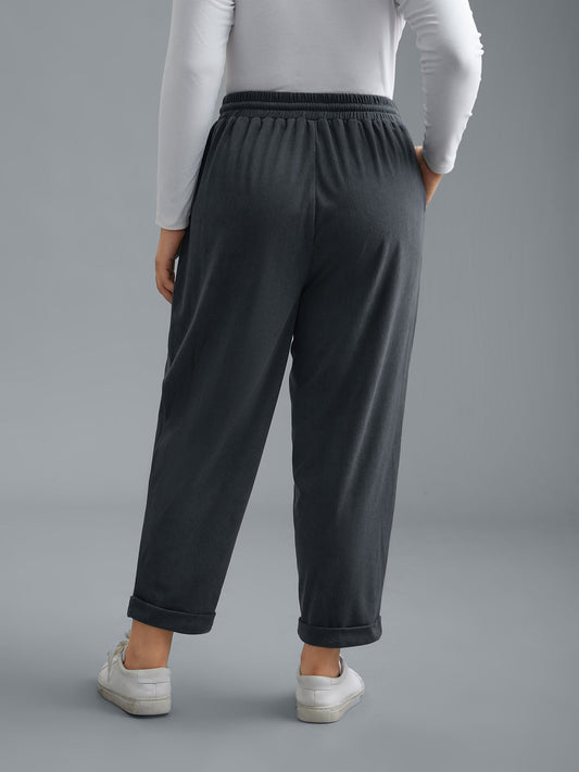 Plain Drawstring Slant Pocket Roll Hem Pants