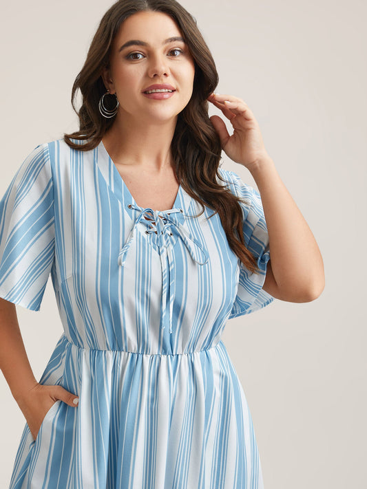 Textured Lace Sleeve Stretchy Waist Midi Dress