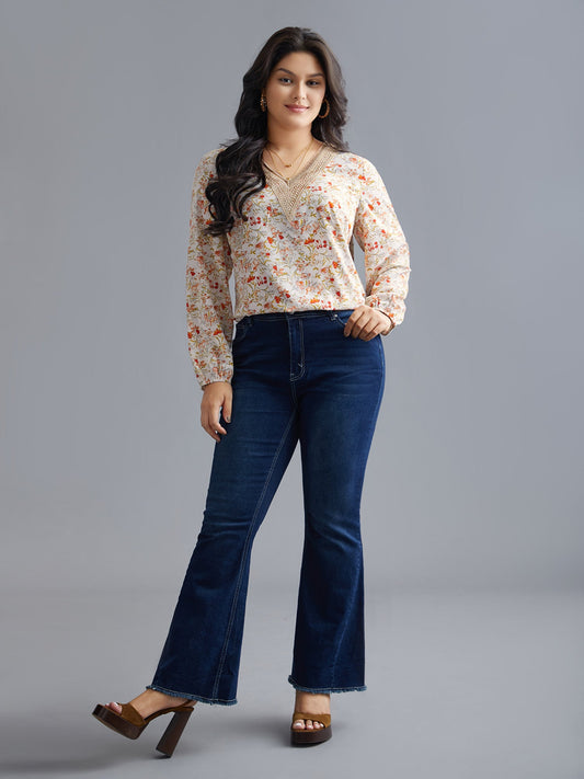 V Neck Ditsy Floral Contrast Webbing Blouse