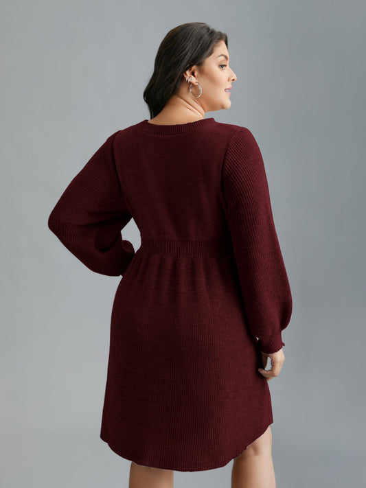 Textured Cable Knit V-Neck Midi Sweater Dress