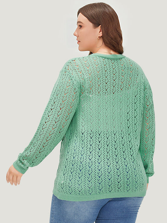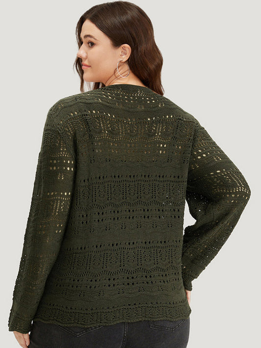 Solid Pocket Hollow Out Button Down Cardigan