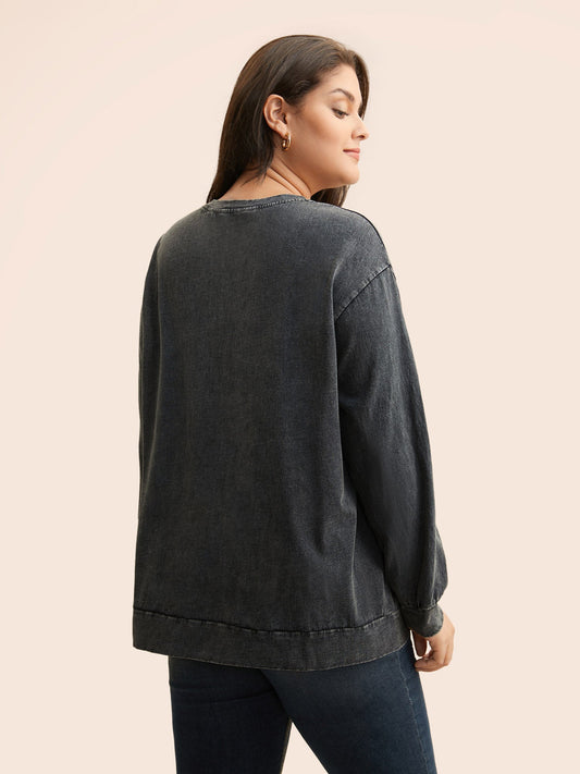 Vintage Round Neck Slightly Stretchy Sweatshirt