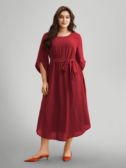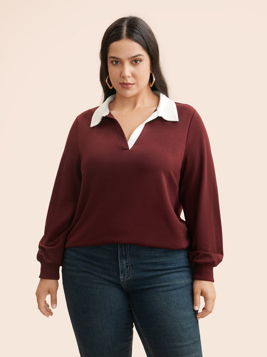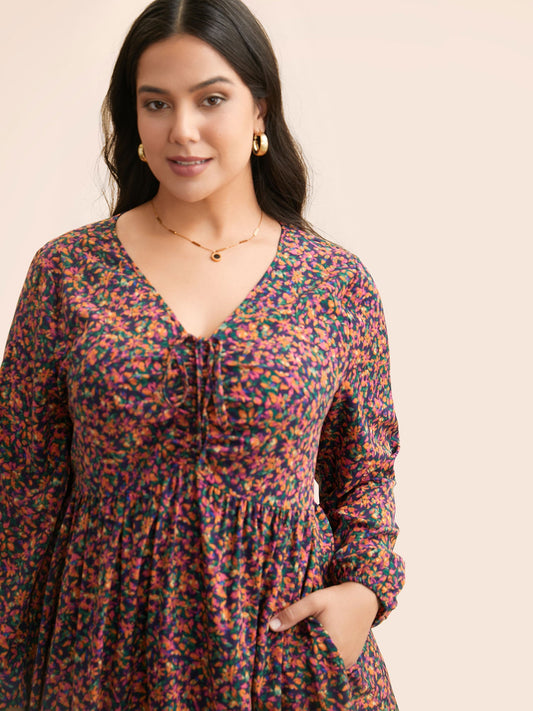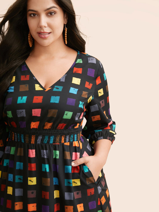 Colorblock Contrast Shirred Lantern Sleeve Dress