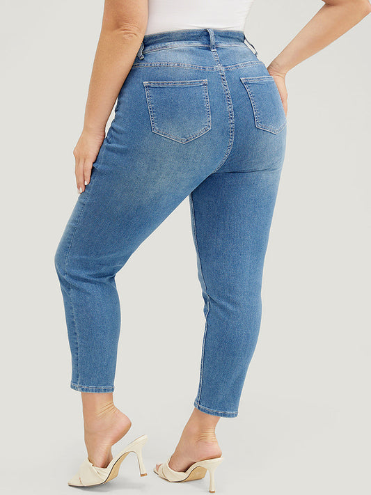 Moderately Stretchy High Rise Dark Wash Cropped Jeans