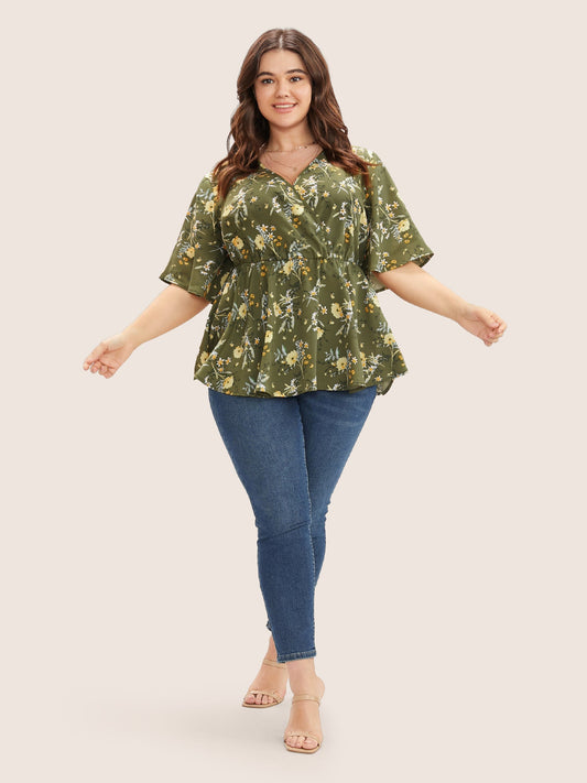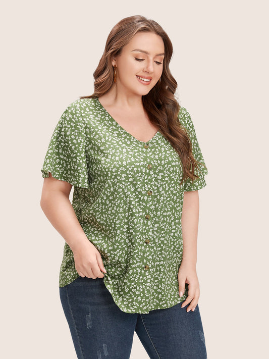 Ditsy Floral Ruffle Sleeve Button Detail Blouse