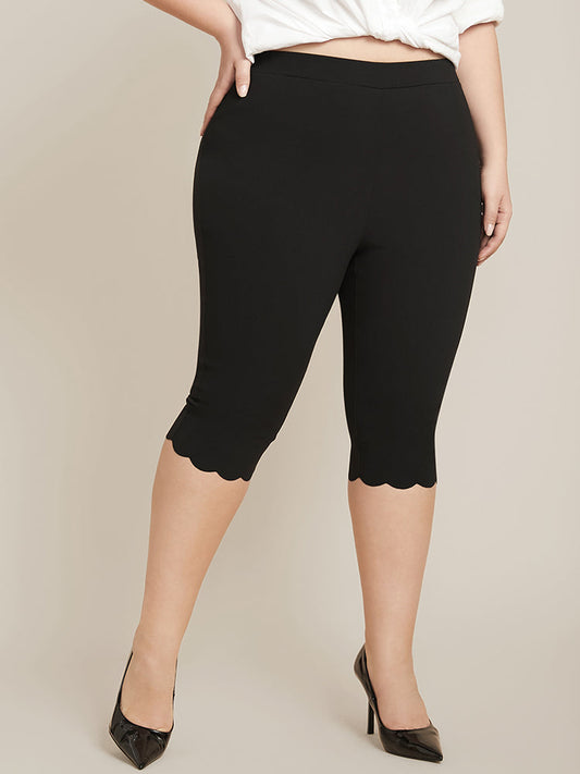 Solid Scalloped Trim Elastic Waist Skinny Leggings
