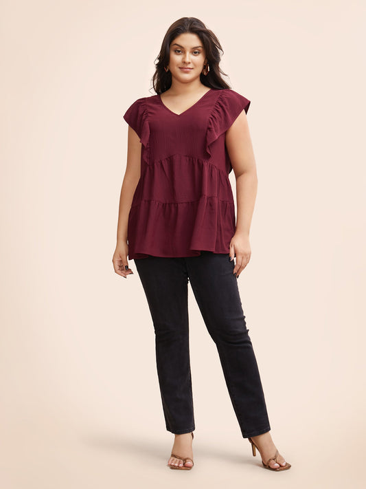 Solid Layered Hem Ruffle Cap Sleeve Blouse